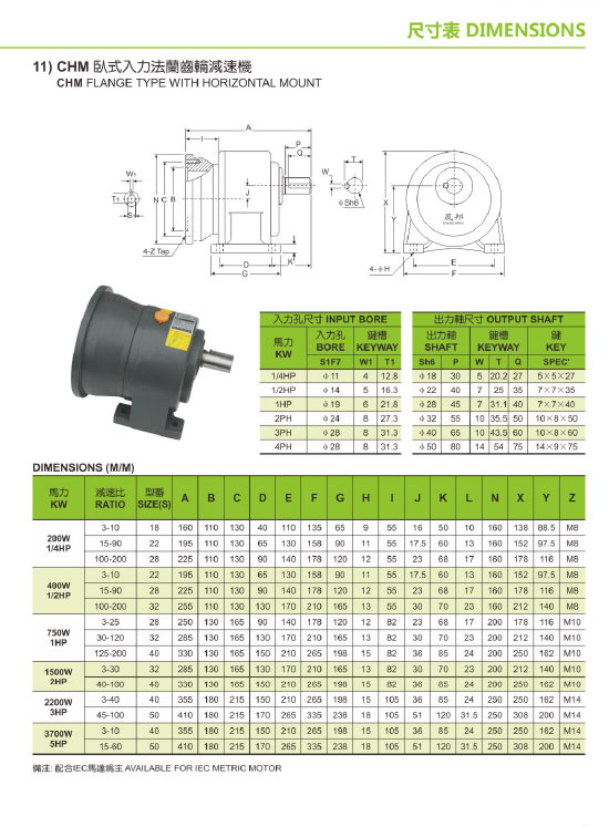 卧式入力法兰齿轮减速机